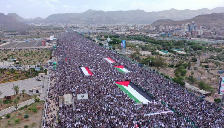 وأعلنت الحشود الجماهيرية، التحدي للعدو الإسرائيلي، ومواصلة التحشيد والنفير العام لإسناد ودعم غزة والشعب الفلسطيني ومقاومته الباسلة، حتى إيقاف العدوان ورفع الحصار عن أهل غزة.