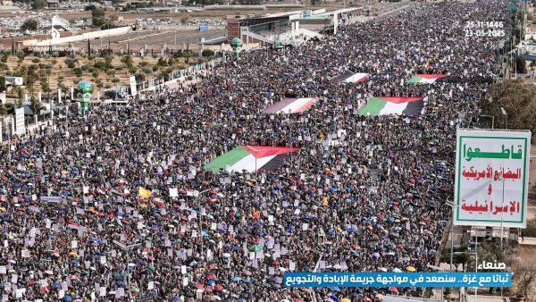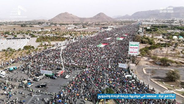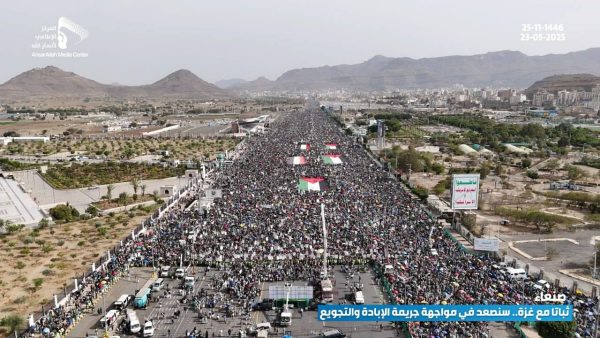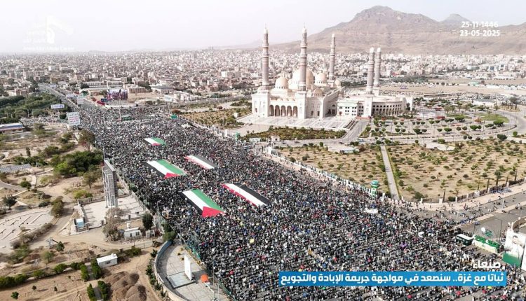 بالصــور : طوفان بشري بالعاصمة صنعاء في مسيرة “ثباتاً مع غزة.. سنصعد في مواجهة جريمة الإبادة والتجويع”