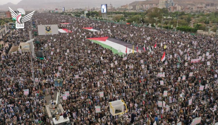 مسيرة مليونية بالعاصمة صنعاء تحت شعار ” ثبات مع غزة وجهوزية واستنفار في مواجهة العدوان”