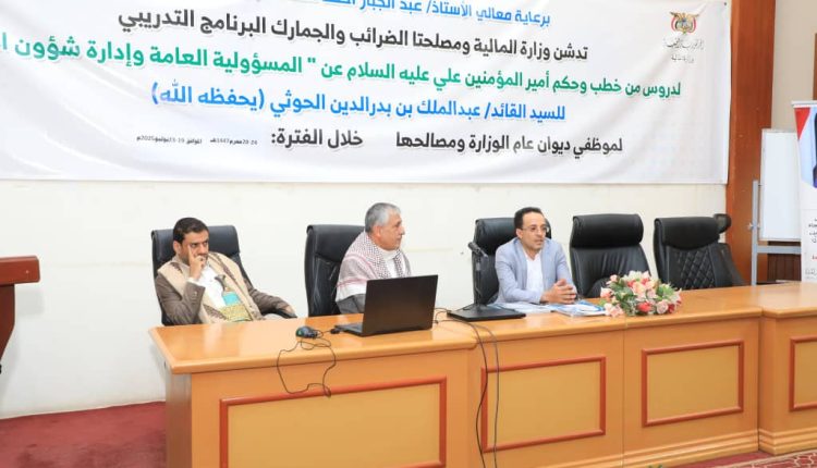 اختتم في وزارة المالية، البرنامج التدريبي لدروس من خطب وحكم أمير المؤمنين علي عليه السلام عن المسؤولية العامة وإدارة شؤون الأمة، للسيد القائد عبدالملك بن بدرالدين الحوثي.