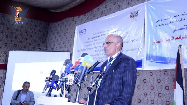 وفي الفعالية أكد رئيس مجلس الوزراء أحمد غالب الرهوي، أن الاتجار بالبشر من الجرائم المقلقة التي ساهم الظرف الراهن الذي يمر به البلد من عدوان وحصار واحتلال لجزء من أراضيه في تفاقمها وانتشار عصابات الاتجار بالبشر المرتبطة بمثيلاتها في الخارج.