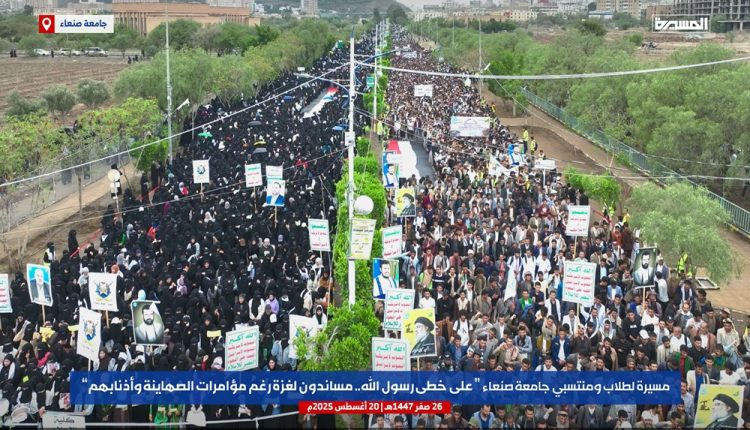 منتسبو جامعة صنعاء في مسيرة حاشدة: مُستمرّون في التضامن وجاهزون لكل خيارات الإسناد