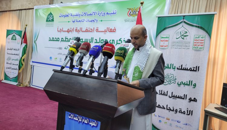وأوضح نائب وزير الاتصالات وتقنية المعلومات المهندس علي المكني أن قطاع الاتصالات يشارك الشعب اليمني الاحتفالات المميزة بذكرى مولد رسول الرحمة والإنسانية.
