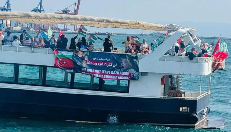 ورفعت السفن لافتات حملت شعارات من قبيل: “من قلب البوسفور.. لم نترك غزة وحدها” و”الحرية لفلسطين”.