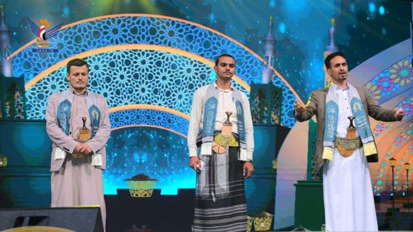 اختتمت اليوم، بصنعاء، فعاليات مهرجان الرسول الأعظم الدورة الثانية عشرة، الذي نظمته مؤسسة الإمام الهادي على مدى ثمانية أيام، بتتويج الفائزين في مسابقات القرآن الكريم، والإنشاد، والشعر.