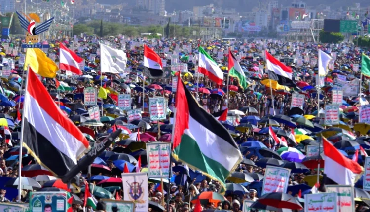 وأوضح بيان صادر عن المسيرة الملوينية، ألقاه نائب وزير الداخلية اللواء الركن عبدالمجيد المرتضى، أنه “استشعاراً لمسؤوليته الدينية والإنسانية والأخلاقية، يستمر الشعب اليمني في خروجه الأسبوعي المليوني جهاداً في سبيل لله وابتغاء لمرضاته، وثباتاً راسخاً في موقفنا المحق والمشرف المساند للشعب الفلسطيني المسلم المظلوم”.