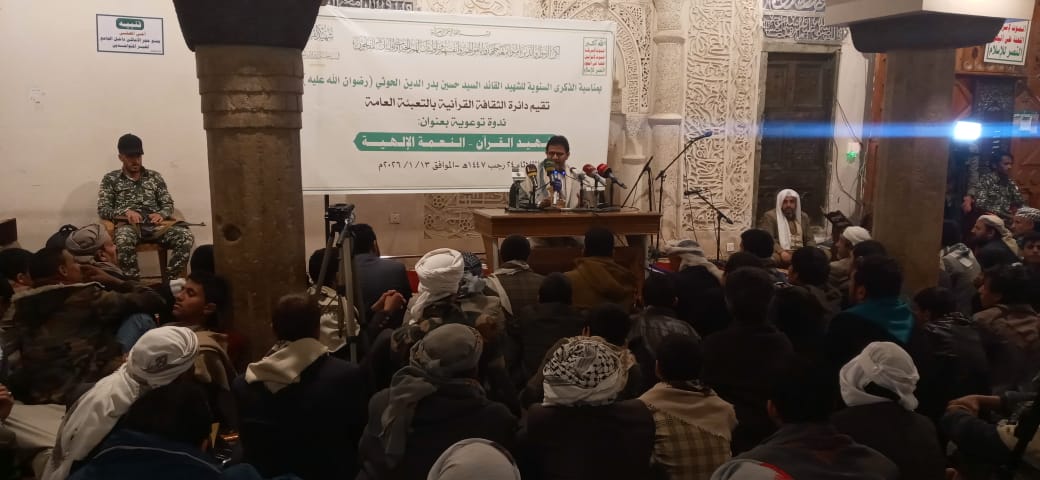 نظّمت دائرة الثقافة القرآنية بالتعبئة العامة، مساء اليوم، في الجامع الكبير بالعاصمة صنعاء، ندوة توعوية بمناسبة الذكرى السنوية للشهيد القائد السيد حسين بدر الدين الحوثي، حملت عنوان «شهيد القرآن.. النعمة الإلهية»، بحضور عدد من العلماء والناشطين الثقافيين والمهتمين بالشأن الثقافي والفكري.