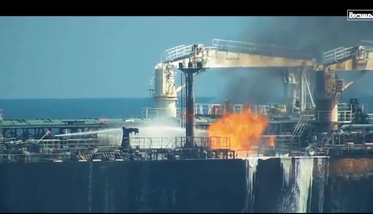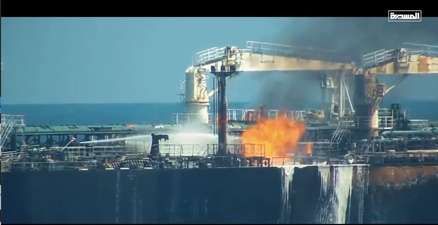 ووفقا للإعلام الحربي فقد تم رصد السفينة من مكان انطلاقها وبعد قيامها بكسر الحصار الذي فرضته القوات المسلحة اليمنية، تم استهدافها وأصيبت في منتصفها واشتعلت النيرات فيها مباشرة، حيث قامت ثلاث سفن حربية متعددة الجنسيات أمريكية وفرنسية وهندية بعملية الإطفاء وإنقاذ طاقم السفينة، واستمرت عملية الإطفاء 19 ساعة.