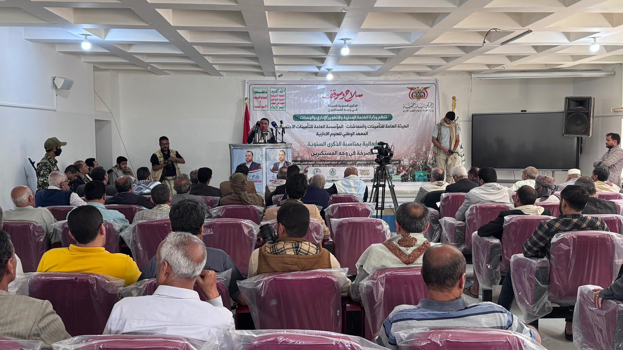 نظمت وزارة الخدمة المدنية والتطوير الإداري ووحداتها التابعة، اليوم، فعالية بمناسبة الذكرى السنوية للصرخة في وجه المستكبرين.