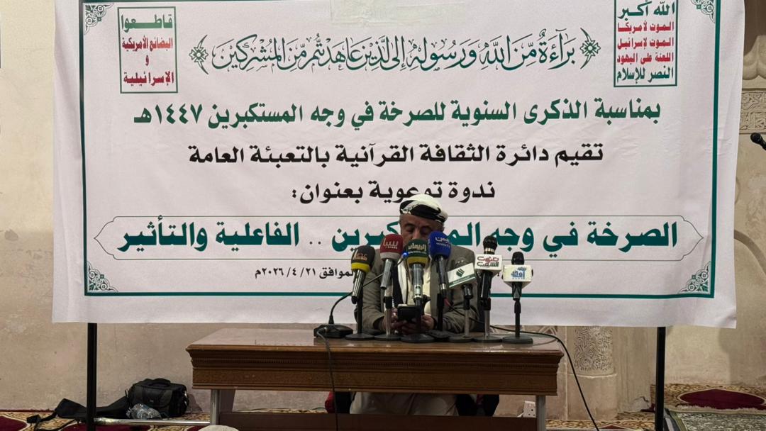 نظمت دائرة الثقافة القرآنية بالتعبئة العامة، مساء اليوم، ندوة توعوية في الجامع الكبير بصنعاء، بمناسبة الذكرى السنوية للصرخة للعام 1447هـ، تحت عنوان “الصرخة في وجه المستكبرين.. الفاعلية والتأثير”