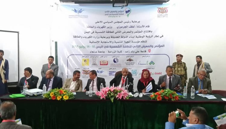بدأت بصنعاء اليوم فعاليات المؤتمر والمعرض الثاني للطاقة الشمسية في اليمن، تنظمه مؤسسة إنجيلا للتنمية والاستجابة الإنسانية بإشراف وزارة الكهرباء والطاقة.