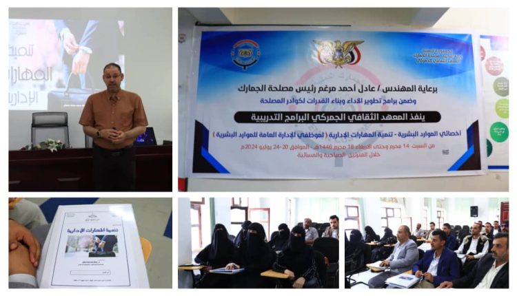 أقيم في المعهد الثقافي الجمركي اليوم السبت ١٤محرم الموافق ٢٠يوليو ٢٠٢٤م برعاية كريمة من المهندس عادل أحمد مرغم رئيس مصلحة الجمارك ضمن برنامج تطوير الأداء وبناء القدرات لكوادر المصلحة من موظفي الإدارة العامة للموارد البشرية .